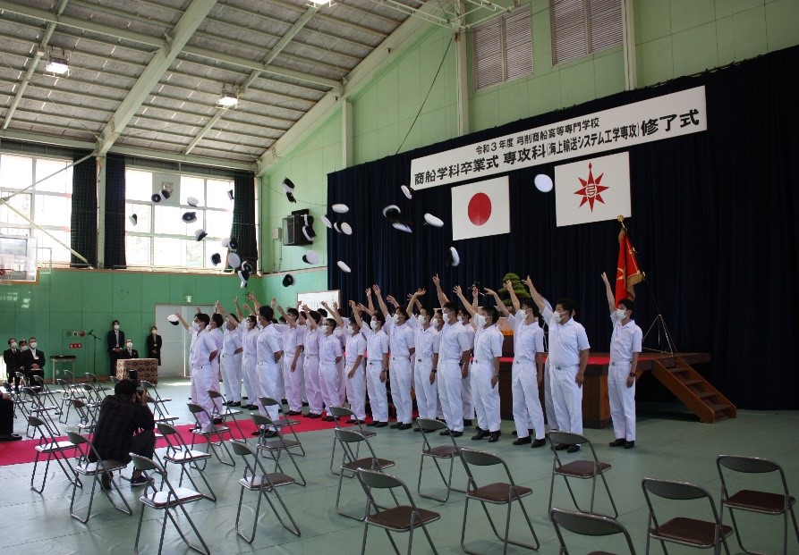 令和3年度商船学科卒業式・専攻科(海上輸送システム工学専攻)修了式を挙行しました