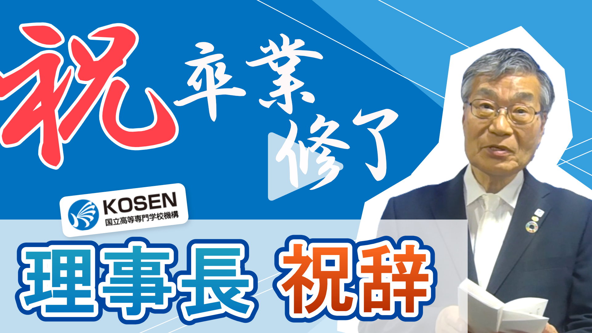 令和7年度商船学科卒業生、海上輸送システム工学専攻修了生に向けて、独立行政法人国立高等専門学校機構の谷口功理事長から、祝辞のビデオレターが届いておりますので、是非御覧ください。
