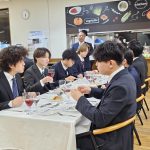 講習では、公的・私的のさまざまな場面を想定しながら、主賓に合わせる姿勢や、場の調和を大切にすることの重要性について分かりやすく教えていただきました。実際にコース料理を味わいながら、学んだマナーをその場で実践できたことで、学生たちはより理解を深めることができました。講習終了後には、講師へ個別に質問をする学生の姿もみられ、積極的に学ぼうとする姿勢が印象的でした。