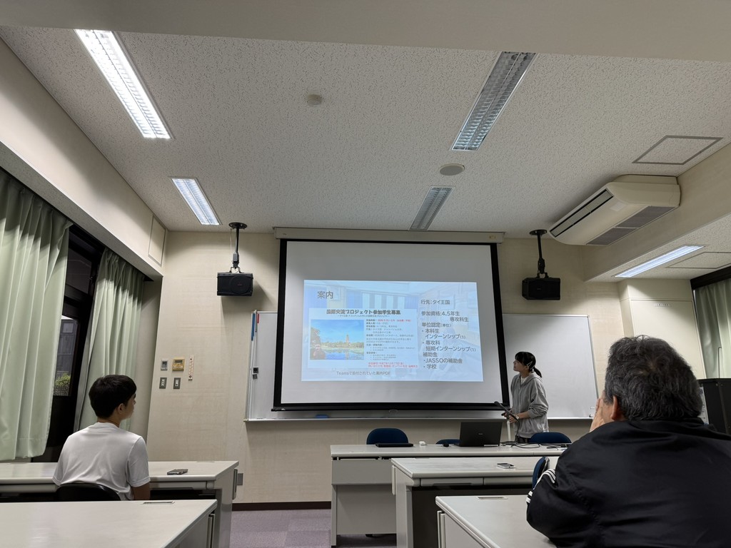 令和8年4月23日(木)、モンゴル及びタイへの国際交流海外インターンシップに参加した学生による報告会を実施しました。