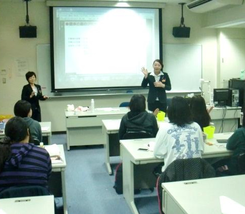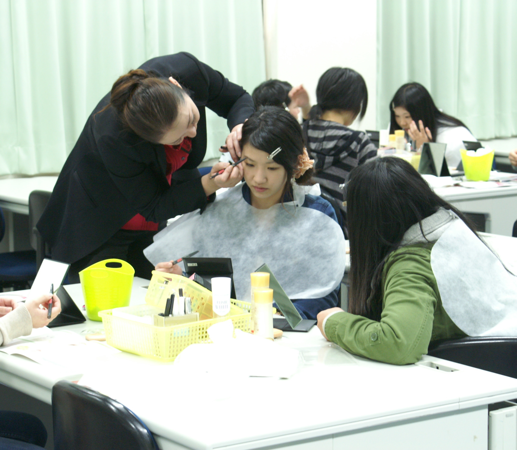 学生は,レッスンを受けながら実際に就活メークにチャレンジしました.学生にとってメークレッスンを受けるのは初めての体験であり,非常に興味のあることです.全員,積極的に聴講し,和気あいあいとした場になりました.参加学生からは,「メイクについてあまり詳しくない私でも分かりやすく,講習会の雰囲気もよくて楽しく学ぶことができました」などの感想が聞かれました.今後の就職活動を行うにあたり,非常に有意義な講習会となったようです.