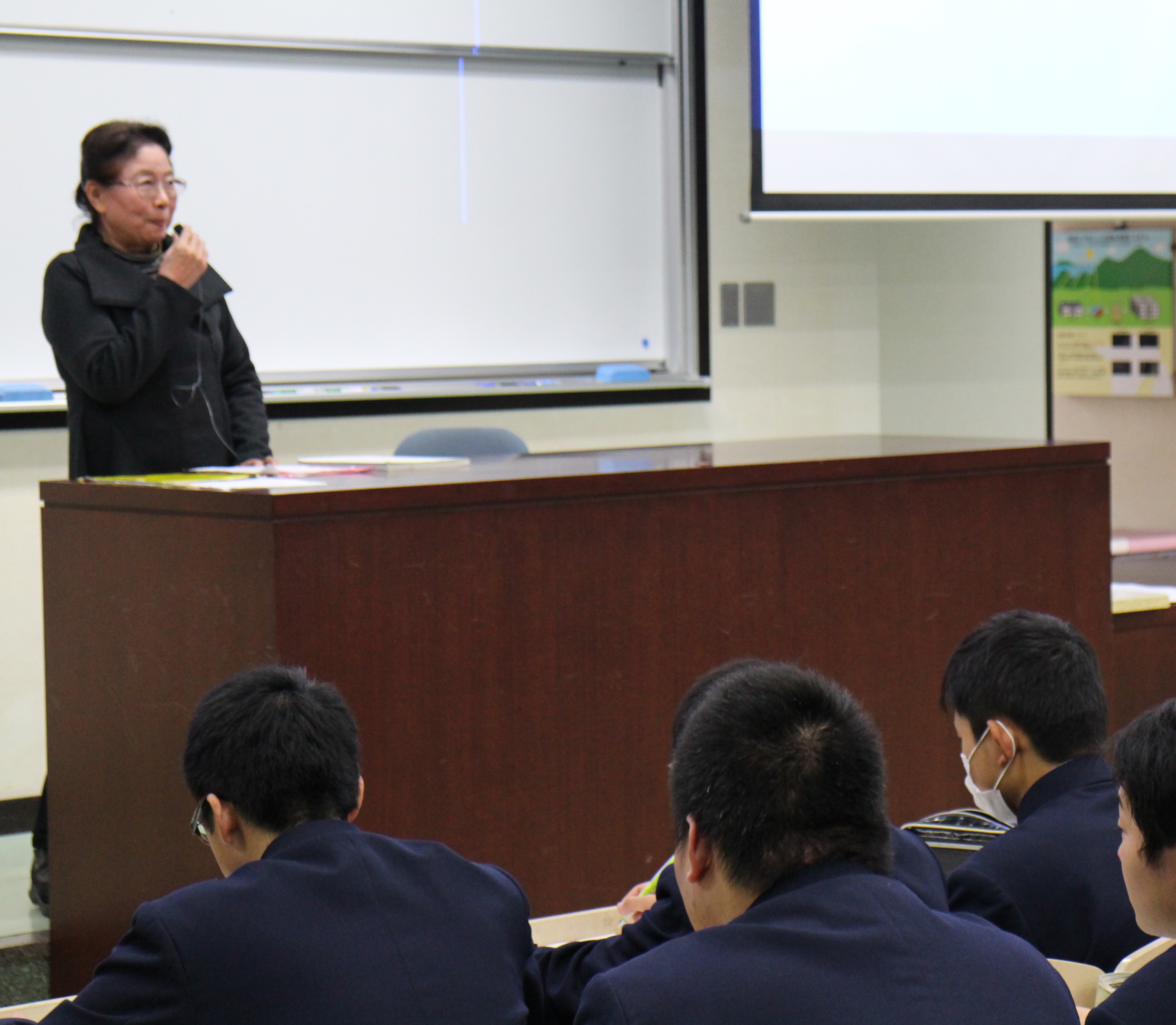 1月28日(木),本校2年生と教職員を対象に,DV未然防止講演会を実施しました.学生相談室と男女共同参画推進室が共同して企画したもので,愛媛県DV防止対策推進会議委員 稲見 和子氏を講師に招き,男女が対等な立場で尊重できる関係について,幅広い内容のお話を聞くことができました.